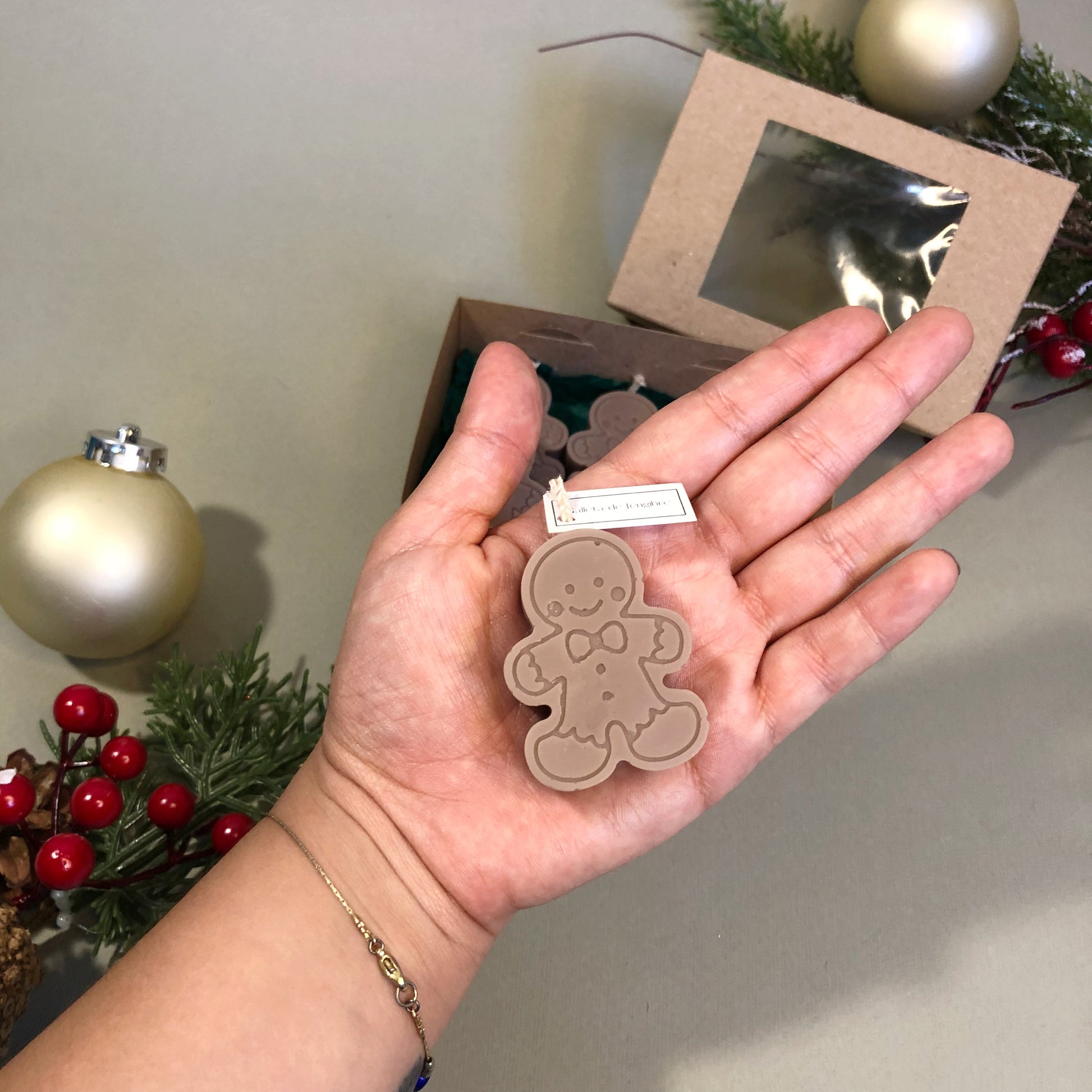 Set 6 velas de soya en forma de galleta de jengibre, con el mismo aroma. 🎄